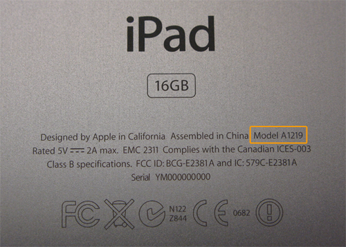 “A1219” (ad esempio indica un iPad di prima generazione).